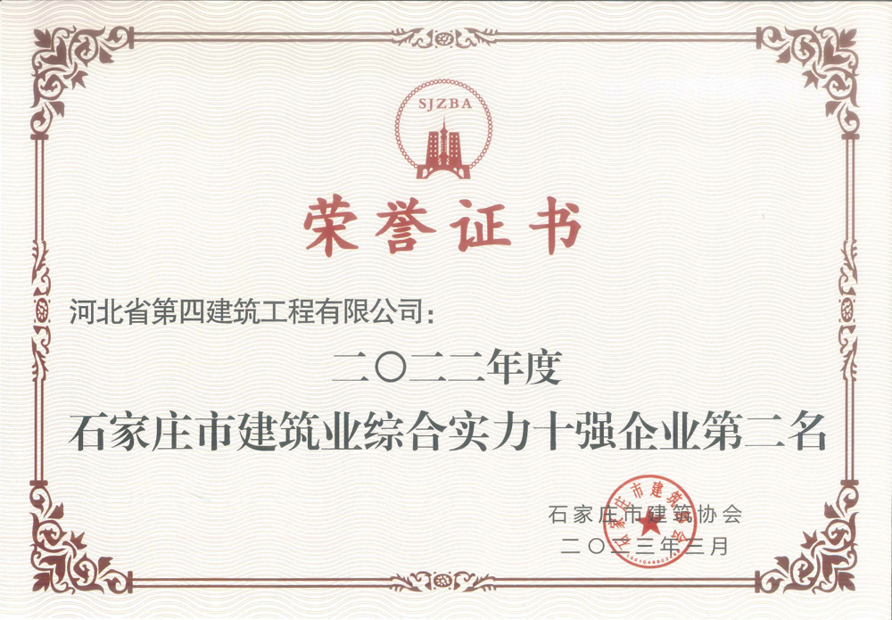 2022年度石家庄市建筑业综合实力十强企业第二名