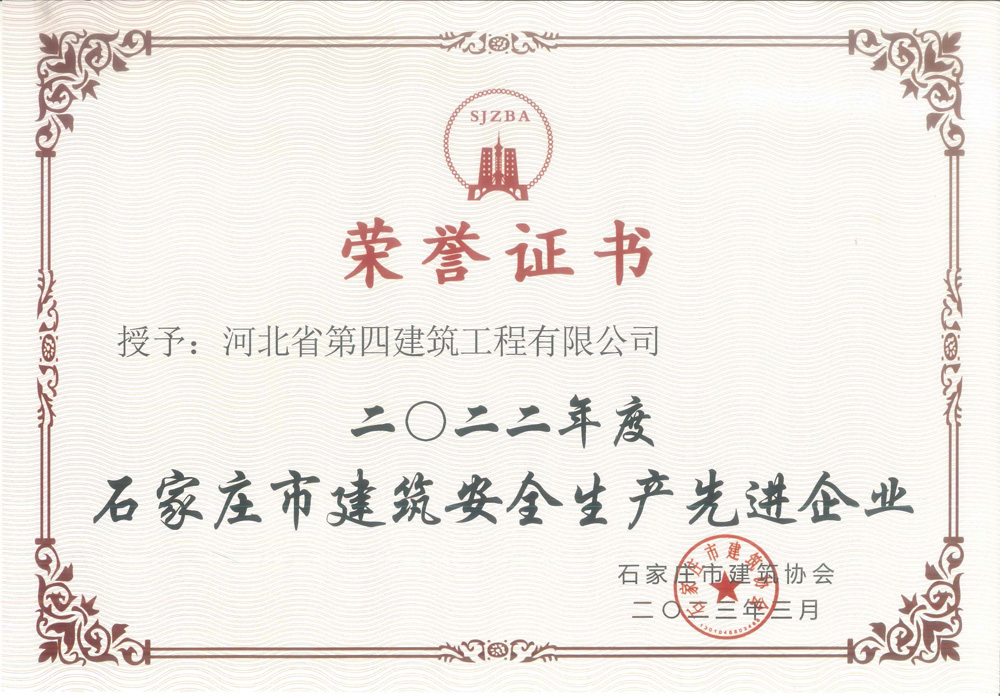 2022年度石家庄市建筑安全生产先进企业